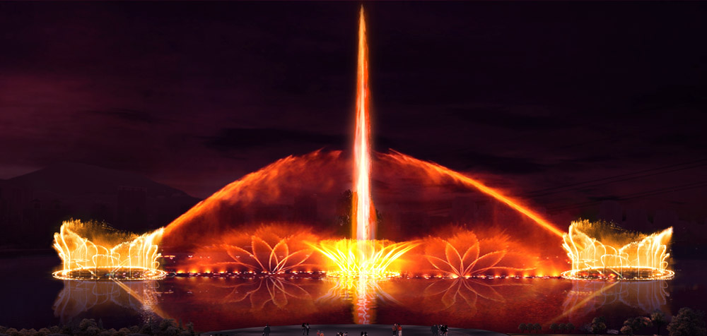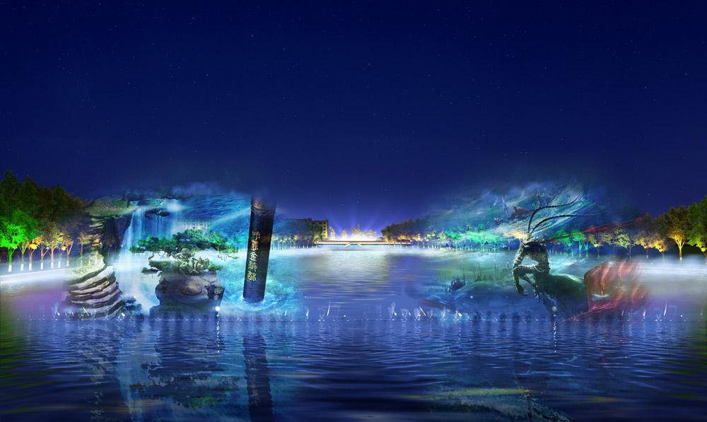 以浩瀚的宇宙作为创意,流星穿梭其中,尽显和谐之美。喷泉离岸边具有广阔的观赏空间,无论近观喷泉还是远眺喷泉,均能得到完美的视觉冲击效果。
